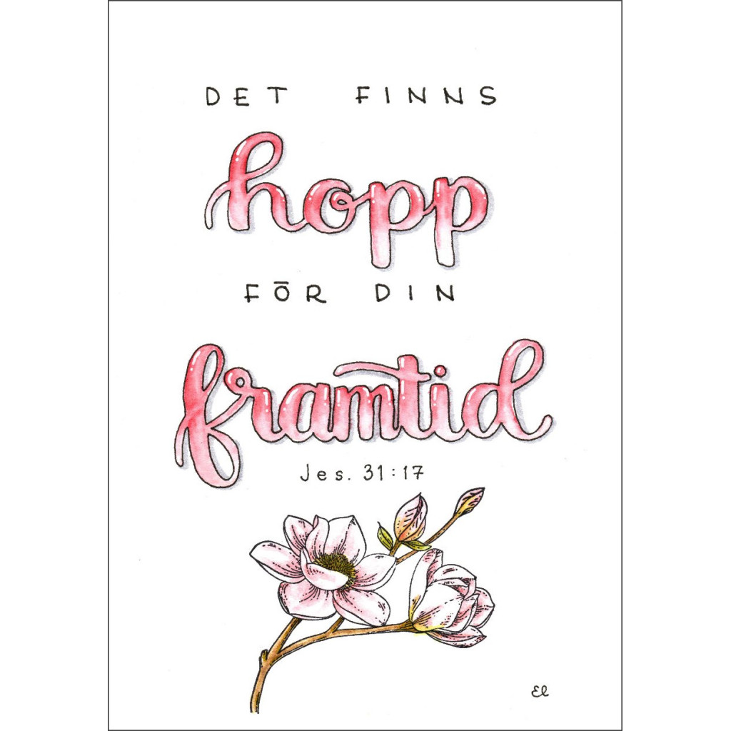 Stort kort med bibelordet "Det finns hopp för din framtid"